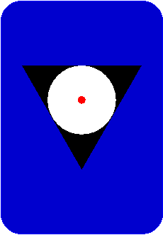 Circaea's personal colours are black, red and white. These are combined in her personal symbol, which is a red circle with an inscribed downward-pointing black equilateral triangle inside which is an inscribed white circle with a black dot in the centre, representing the sky, the mesa, the people and the monarch of shadow Ensilarum, respectively. This is very similar to the flag of Ensilarum, but in her personal colours rather than those of the shadow (which are royal blue, iron-black, gold and black respectively). |