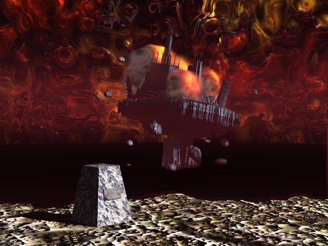 Following the failure of the negotiations with the ambassador from Chaos, the player characters escort him back to the edge of the Abyss and he and the Agrazal ride off on a filmy. Shortly afterwards, the Courts explode and tumble into the Abyss... This view is from by Deirdre's monument on the edge of the Abyss.