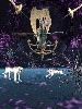The courtyard is brightly lit by the same sort of flames as light Faiella-Bionin. A couple of skeletal demons, burning white and curled up in a foetal position, float down into the centre of the courtyard. The water is boiling around them. They land in a triangle of obelisks, which Tristan can sense are imbued with Real power. By the triangular area stand various Rebmans and Hania (in Mr Skin guise). Hania gestures and the Rebmans enter the triangular area and pick up the demons without being burned by them. They carry the demons over the Hania, who pulls out a Trump. Tamarind senses the Trump of Chever become active. The two Chaos lords are passed through the link.