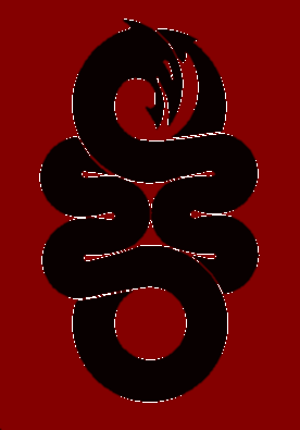 In the left-hand Throne Room is Skyrie, seated on the throne with various followers below him on the dais. Some of the have a definite family resemblance to him. Others seem to be nobles or military people. Instead of the large Unicorn banner, on the wall above the throne is a huge banner bearing Skyrie's personal symbol, a stylised black sun containing a yin-yang symbol over the motto 'No Fear For Consequence Remains', all on a white background.